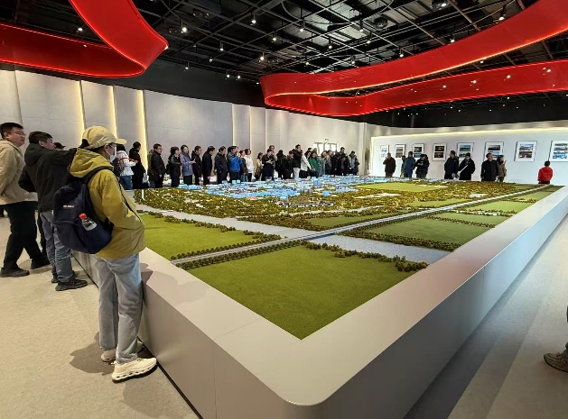 怀着对学校未来发展的热切期盼,教师们来到了雄安新区容城县大学城项目建设指挥部。在这里,讲解员详细介绍了新区高等教育布局规划以及调教 雄安新校区的选址、设计理念与最新建设进展。通过聆听讲解和观看规划沙盘,那座即将拔地而起的现代化、智能化、共享化的新校区蓝图清晰地呈现在大家眼前。教师们倍感振奋,深刻认识到学校融入雄安、服务国家战略的重大意义,增强了作为交大人的自豪感和使命感。