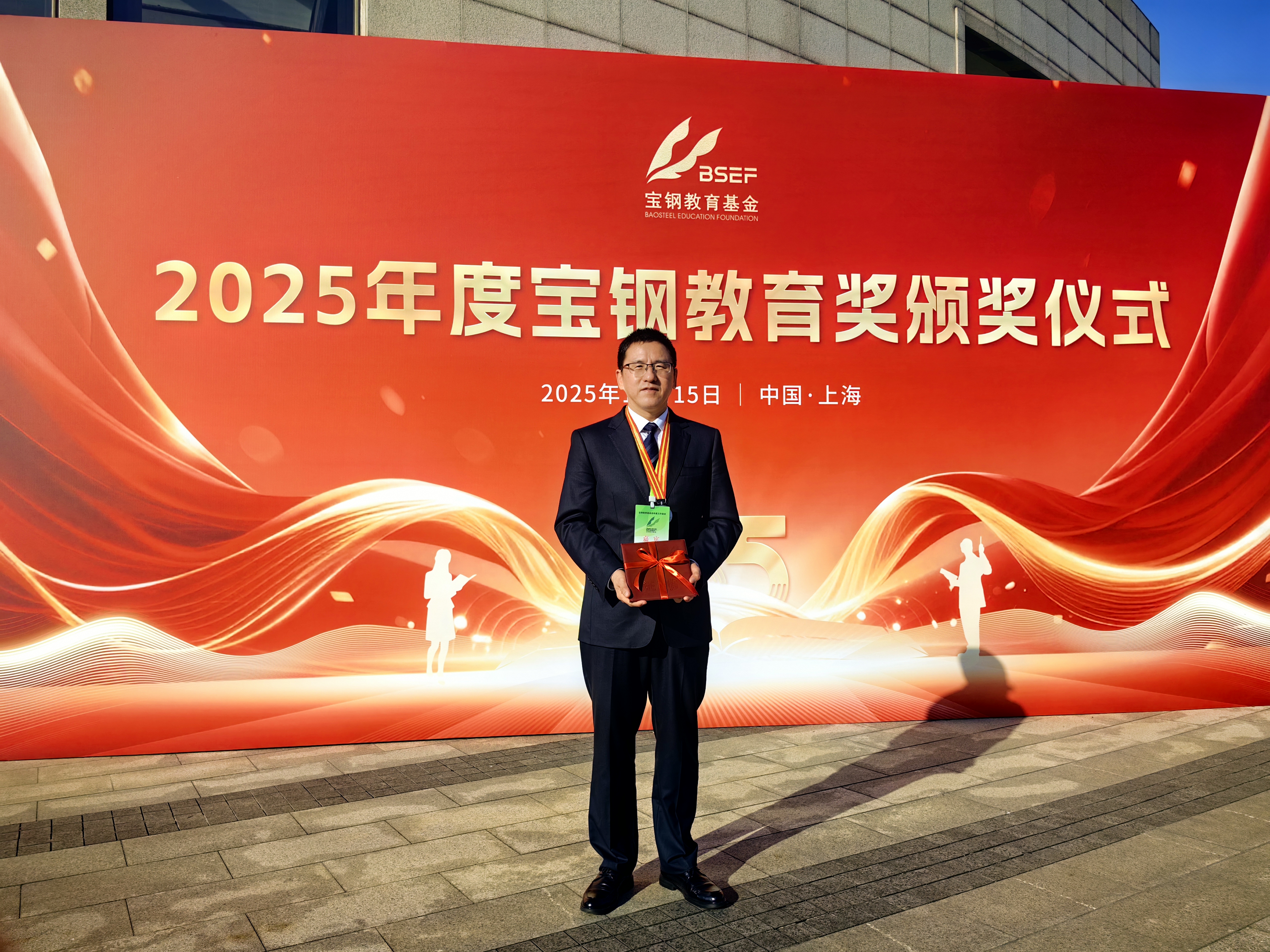 2025年11月15日,宝钢教育奖评审会暨颁奖仪式在上海召开,校党委常委、副校长施先亮作为宝钢教育奖评委出席活动。调教 蒋增强教授获评宝钢优秀教师奖。